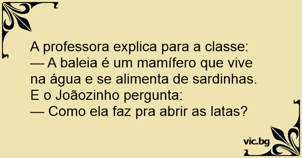 — A baleia é um mamífero que vive na água e se alimenta de sardinhas.