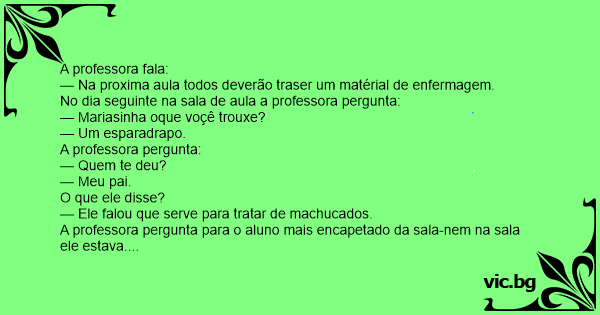— Na proxima aula todos deverão traser um matérial de enfermagem.