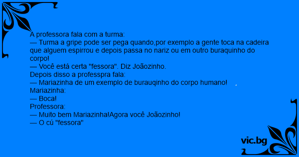 — Você está certa "fessora". Diz Joãozinho.