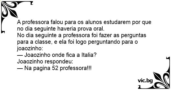 No dia seguinte a professora foi fazer as perguntas para a classe, e ela foi logo perguntando para o joaozinho: