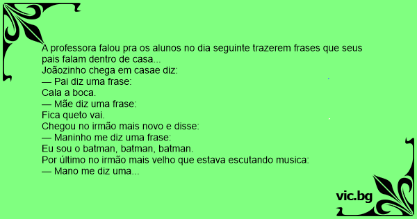 A professora falou pra os alunos no dia seguinte trazerem frases que seus pais falam dentro de casa...