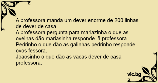 Joaosinho o que dão as vacas dever de casa professora.