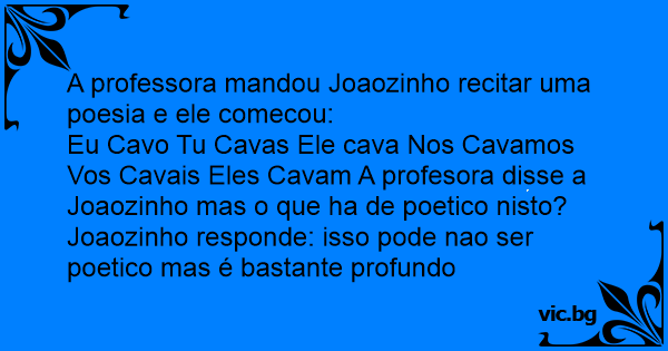 A professora mandou Joaozinho recitar uma poesia e ele comecou:
