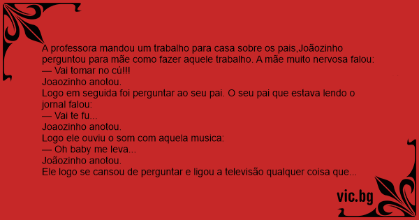 — Joaozinho que que sua mae falou?