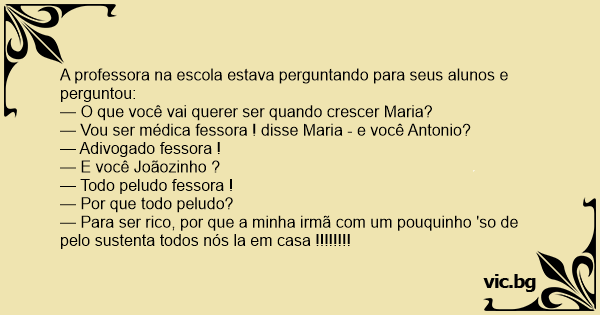 — Vou ser médica fessora ! disse Maria - e você Antonio?