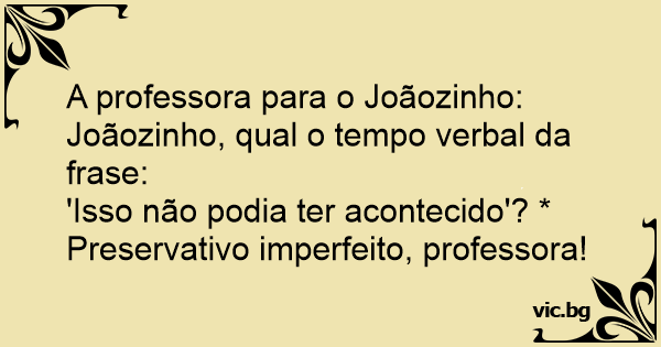 A professora para o Joãozinho: Joãozinho, qual o tempo verbal da frase: