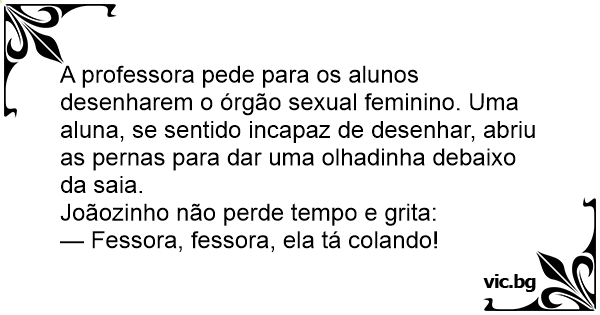 A professora pede para os alunos desenharem o órgão sеxuаl feminino. Uma aluna, se sentido incapaz de desenhar, abriu as pernas para dar uma olhadinha debaixo da saia.
