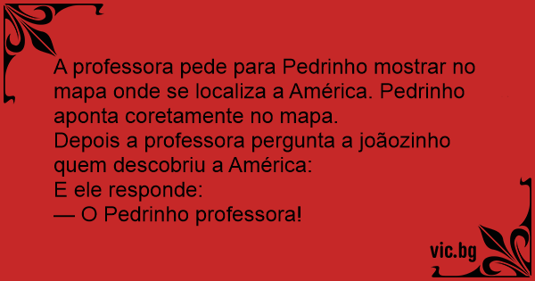 Depois a professora pergunta a joãozinho quem descobriu a América:
