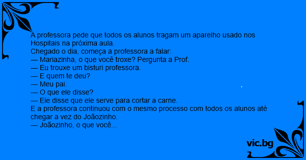 E a professora continuou com o mesmo processo com todos os alunos até chegar a vez do Joãozinho.