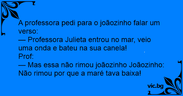 — Professora Julieta entrou no mar, veio uma onda e bateu na sua canela!