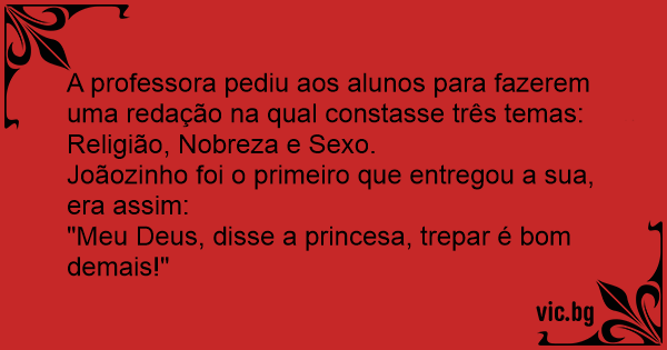 A professora pediu aos alunos para fazerem uma redação na qual constasse três temas: Religião, Nobreza e Sеxо.