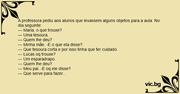 A professora pediu aos alunos que levassem alguns objetos para a aula. No dia seguinte: