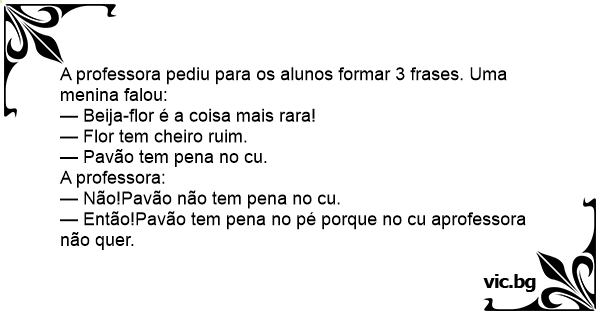 — Então!Pavão tem pena no pé porque no cu aprofessora não quer.