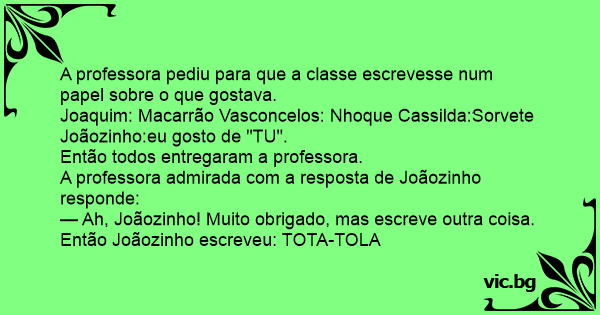 — Ah, Joãozinho! Muito obrigado, mas escreve outra coisa.