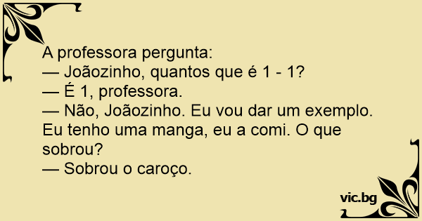— Não, Joãozinho. Eu vou dar um exemplo. Eu tenho uma manga, eu a comi. O que sobrou?