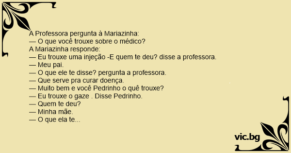 — Eu trouxe uma injeção -E quem te deu? disse a professora.