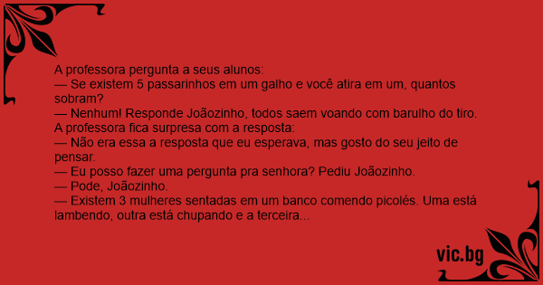 — Se existem 5 passarinhos em um galho e você atira em um, quantos sobram?