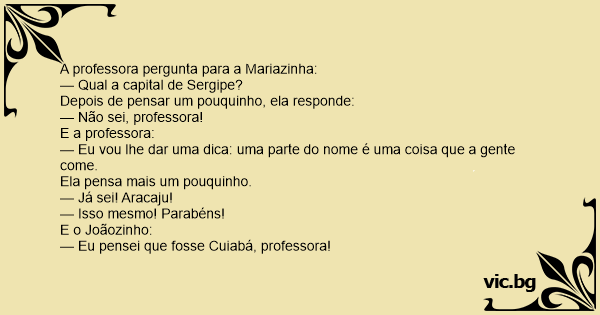 — Eu pensei que fosse Cuiabá, professora!