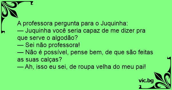 — Juquinha você seria capaz de me dizer pra que serve o algodão?