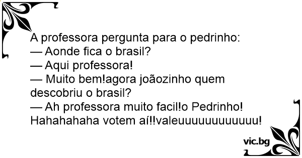— Muito bem!agora joãozinho quem descobriu o brasil?