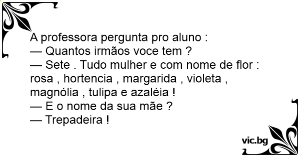 — Sete . Tudo mulher e com nome de flor : rosa , hortencia , margarida , violeta , magnólia , tulipa e azaléia !