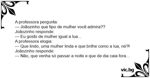 — Joãozinho que tipo de mulher você admira??