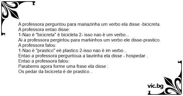 A professora perguntou para mariazinha um verbo ela disse -bicicreta.