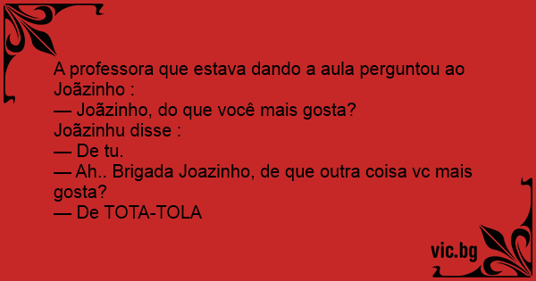 — Ah.. Brigada Joazinho, de que outra coisa vc mais gosta?