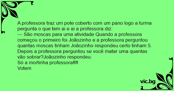 Depois a professora perguntou se você matar uma quantas vão sobrar?Joãozinho respondeu: