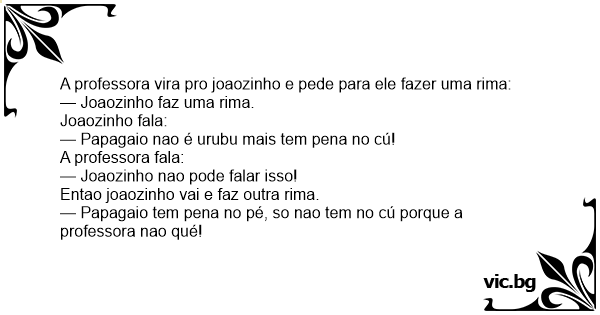 A professora vira pro joaozinho e pede para ele fazer uma rima: