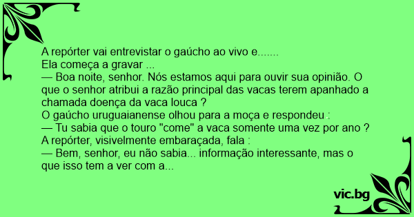 — Boa noite, senhor. Nós estamos aqui para ouvir sua opinião. O que o senhor atribui a razão principal das vacas terem apanhado a chamada doença da vаса louca ?
