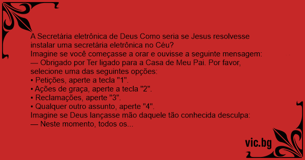 A Secretária eletrônica de Deus Como seria se Jesus resolvesse instalar uma secretária eletrônica no Céu?