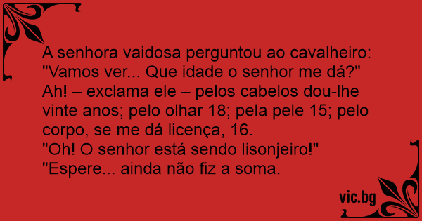 A senhora vaidosa perguntou ao cavalheiro: