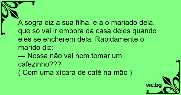 A sogra diz a sua filha, e a o mariado dela, que só vai ir embora da casa deles quando eles se encherem dela. Rapidamente o marido diz: