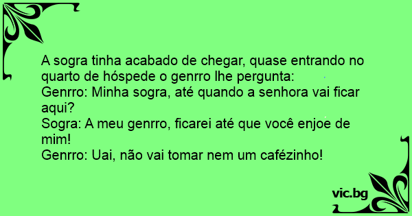 A sogra tinha acabado de chegar, quase entrando no quarto de hóspede o genrro lhe pergunta: