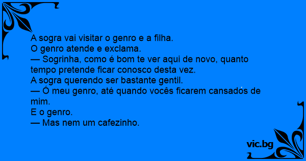 — Sogrinha, como é bom te ver aqui de novo, quanto tempo pretende ficar conosco desta vez.