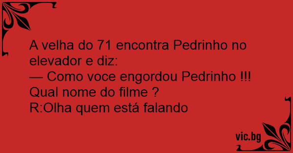 A velha do 71 encontra Pedrinho no elevador e diz: