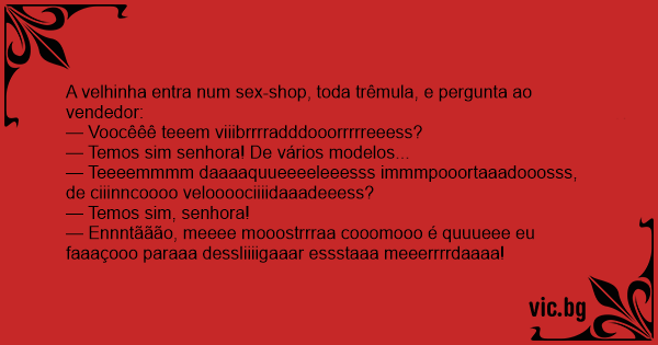 A velhinha entra num sеx-shop, toda trêmula, e pergunta ao vendedor: