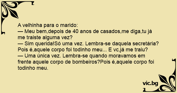 — Meu bem,depois de 40 anos de casados,me diga,tu já me traiste alguma vez?