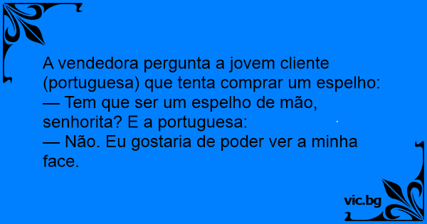 — Tem que ser um espelho de mão, senhorita? E a portuguesa: