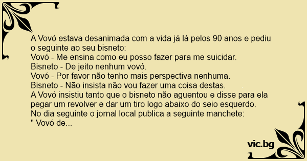 Vovó - Me ensina como eu posso fazer para me suicidar.