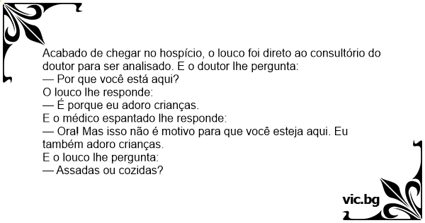 Acabado de chegar no hospício, o louco foi direto ao consultório do doutor para ser analisado. E o doutor lhe pergunta: