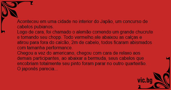 Aconteceu em uma cidade no interior do Japão, um concurso de cabelos pubianos.