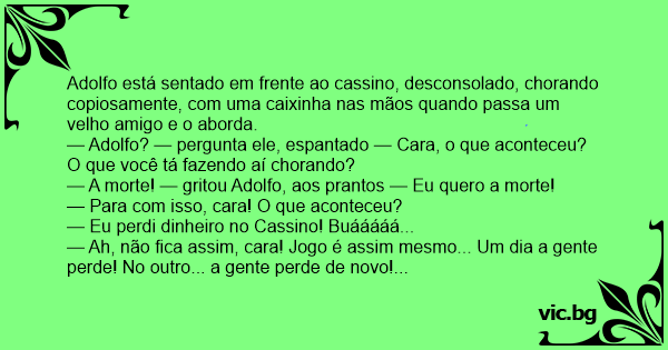 — Eu perdi dinheiro no Cassino! Buááááá...