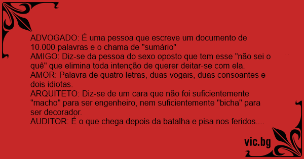 AMOR: Palavra de quatro letras, duas vogais, duas consoantes e dois idiotas.