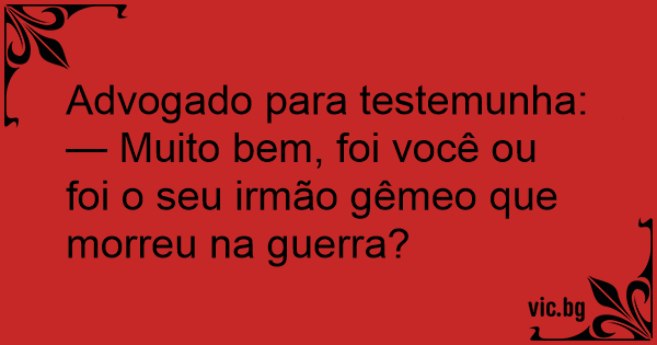— Muito bem, foi você ou foi o seu irmão gêmeo que morreu na guerra?