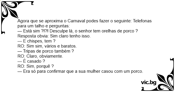 Agora que se aproxima o Carnaval podes fazer o seguinte: Telefonas para um talho e perguntas: