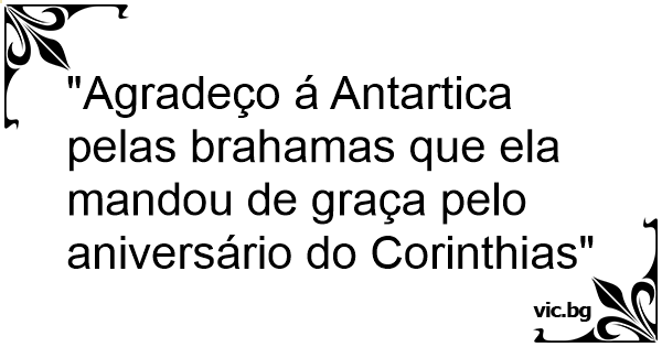 "Agradeço á Antartica pelas brahamas que ela mandou de graça pelo aniversário do Corinthias"