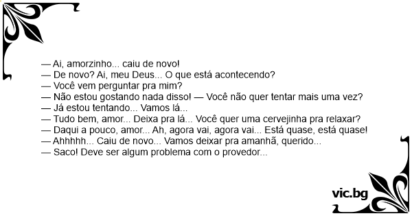 — Ahhhhh... Caiu de novo... Vamos deixar pra amanhã, querido...