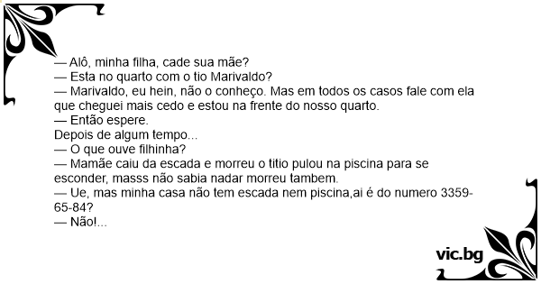 — Ue, mas minha casa não tem escada nem piscina,ai é do numero 3359-65-84?